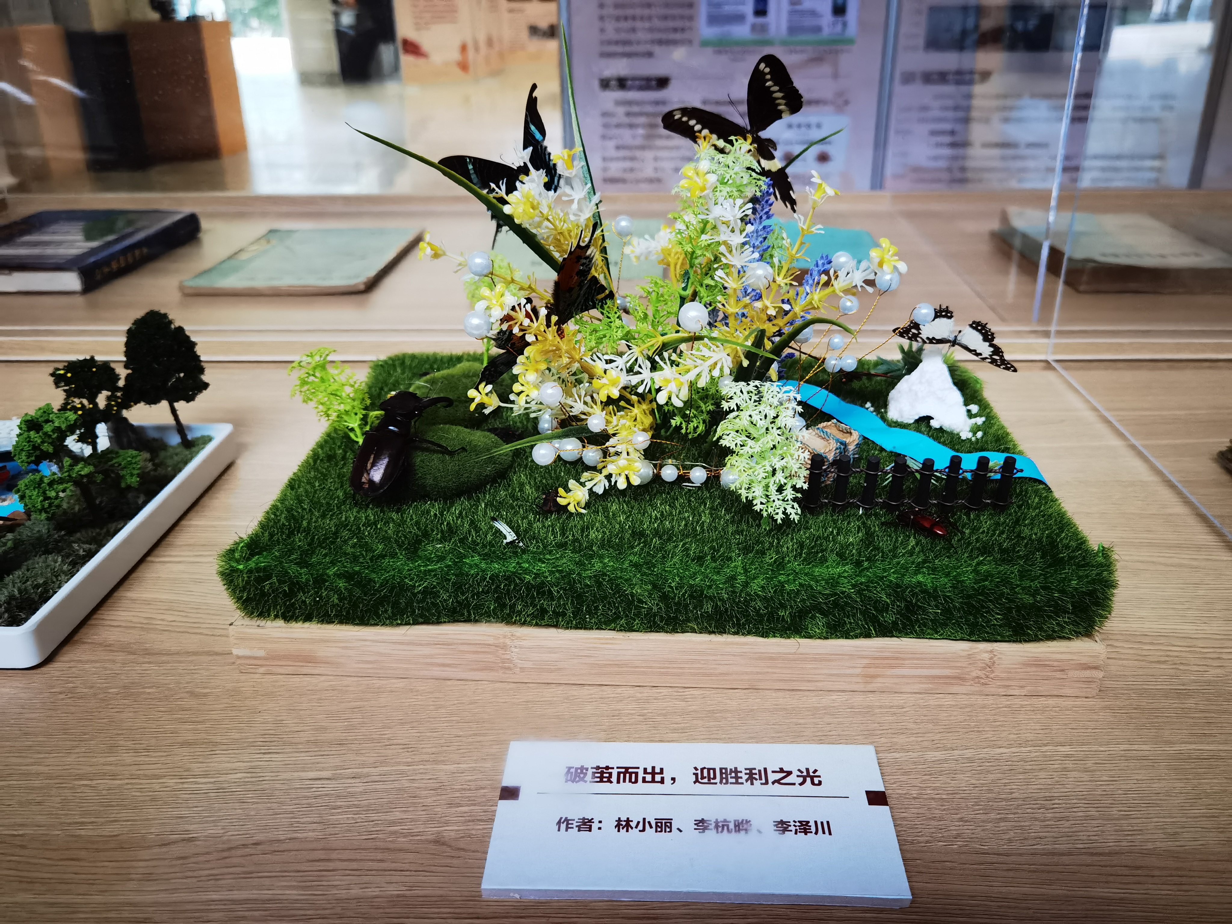 学生创意作品展板块,展出了学生的微观摄影作品和昆虫微景观作品,方寸之间,尽显当代大学生的创意与情怀。