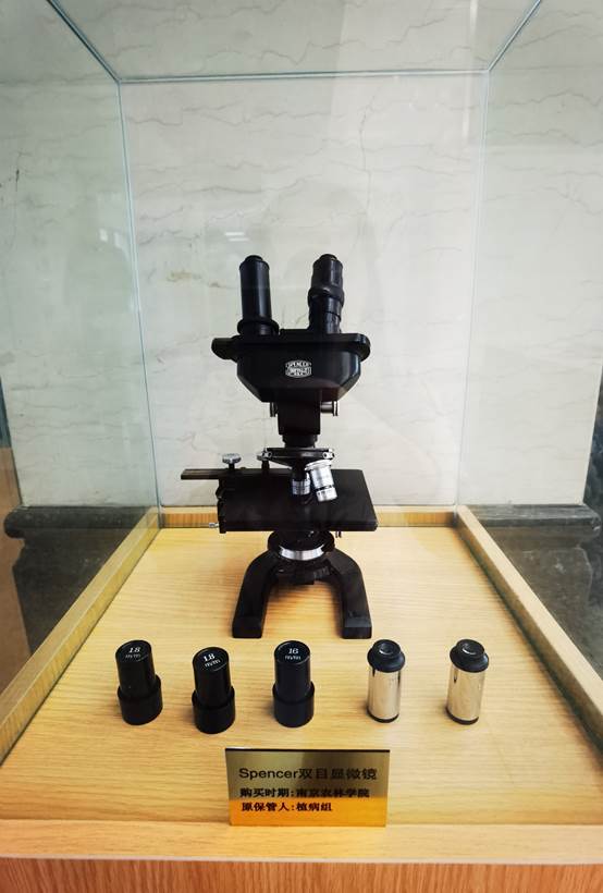 两台上世纪中叶的显微镜,多幅精美的教学挂图,吸引了许多参观者驻足拍摄。据介绍,1952年全国院系调整,成立南京农学院,下设植物保护系,建系初期办学条件艰苦,显微镜仅有48台,但师生克服困难建基立业,全面推进院系建设。而教学挂图部分为上世纪七八十年代教师手绘,广泛用于学生课堂教学和社会人员农技培训。