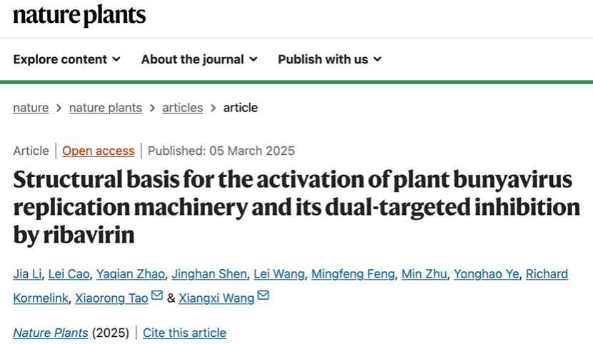 陶小荣教授团队联合中国科学院生物物理研究所王祥喜研究员团队,在全球植物学顶级期刊《Nature Plants》在线发表突破性研究成果,首次解析番茄斑萎病毒(Tomato spotted wilt virus, TSWV)RNA复制酶全长三维结构,为靶向抗病毒新农药研发开辟全新路径。这项历时六年的研究攻克了植物病毒学领域复制酶结构解析的重点难题,揭示了复制酶激活及其双靶点抑制的分子机制,使人们得以窥见植物病毒遗传物质复制机器的“庐山真面目”。