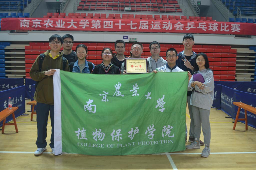 第47届运动会乒乓球比赛在体育中心圆满结束。植保代表队力挫强敌,勇夺桂冠。