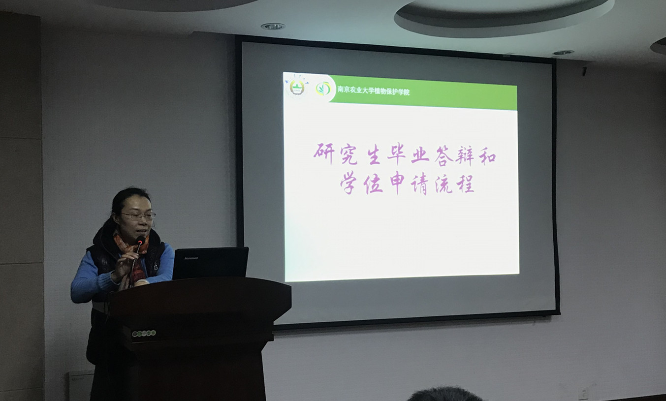 岳丽娜老师针对毕业论文要求、论文答辩流程、申请授予研究生学位证的条件等方面,一一为大家进行讲解。特强调了毕业论文查重、抽检的时间节点,以及毕业材料填写中需要注意的事项,提醒毕业生们切不可忽视相关通知。