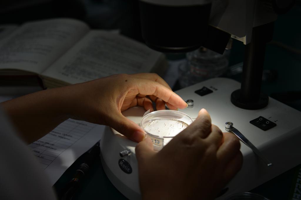 竞赛活动办公室主任、南京海关动植物检疫监管处处长吴新华表示,标本制作看起来风平浪静,实际则是最能体现选手实力一个环节。标本制作要求选手通过鉴定特征解剖、特征照片拍摄制作实物标本和数字标本,直接考核选手的“手上功夫”。“昆虫项目”中的豆象个体只有1-2毫米,却要从中解剖出鉴定用的虫体器官,其难度不亚于医生的精细手术;“线虫项目”培养皿中的“液体”几乎无色透明,裁判告诉记者里面实际有大量线虫,在显微镜下,肉眼难以发现的小小线虫一团团扭来扭去。已造成154万株松树死亡,对我国松林产生致命性伤害的“松材线虫”就是线虫家族成员。在有限的时间内,对这些“微生物”辨明正身,然后再制成标本,需要心灵与手巧,更需耐心和毅力。