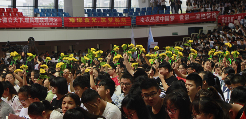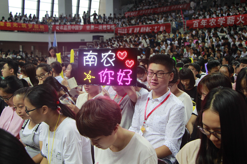 新生典礼开始前,各院辅导员和学生干部们就已经带领着各学院新生们有序进场。在等待领导们进场时,各院新生挥舞着灯牌和横幅,植保院的新生更是手持向日葵,现场气氛瞬间热烈起来。接下来,在同学们热烈的掌声中,我们迎来了周光宏校长。校长带着同学们领略近几年我校取得的优秀成绩,同时也展望未来,校长还给了同学们三个建议:志存高远,勤奋学习,持之以恒。相信同学们会带着校长的建议和祝福在未来的路上勇往直前!在校长致辞完以后,随后是老师等代表发言。每位学子在开学典礼上庄严宣誓,努力拼搏,奋发向上。在这个特殊的日子——教师节,老师将去教育一批新的学生,学生也将面对新的指导教师。学生代表在指挥下纷纷向老师献花,表达对老师浓浓的谢意。最后,在校歌的回响中,新生典礼完满结束。