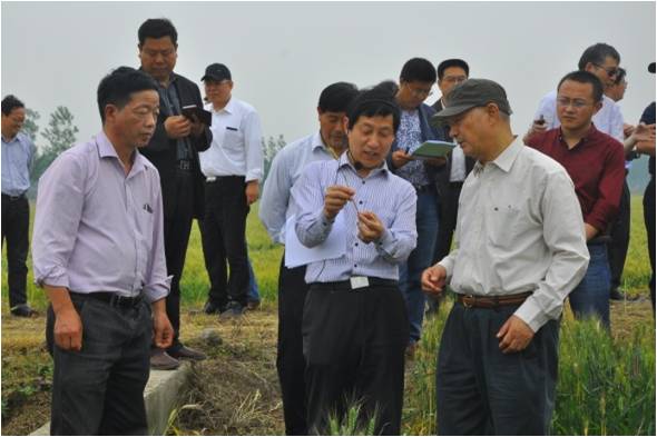 江苏省农委副主任张坚勇、植保站站长田子华视察防效