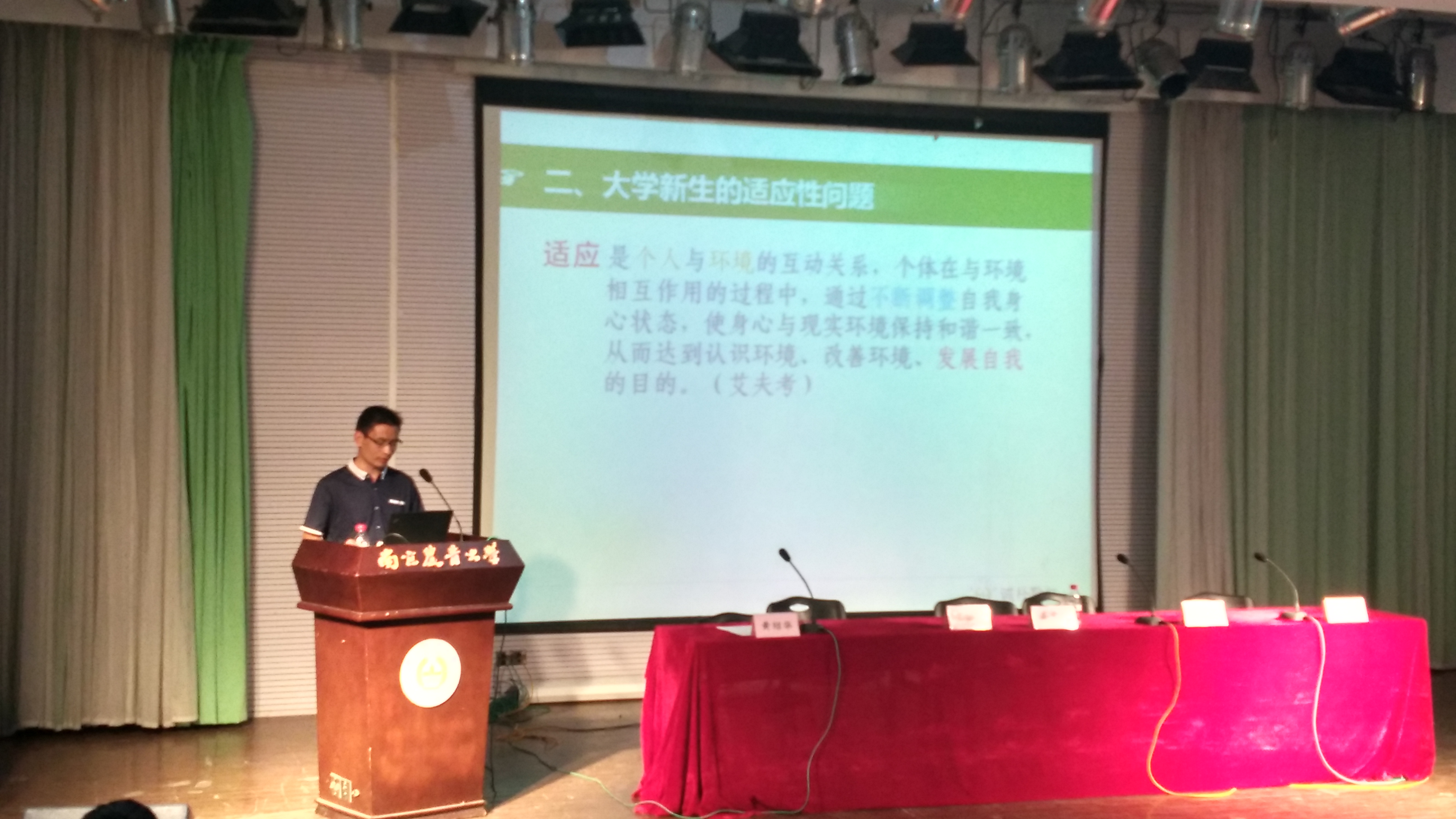 9月21日下午四点,嫩草影院 2015级新生入学教育大会在教四楼报告厅顺利举行。副院长高学文,昆虫系系主任王备新教授、农药系系主任叶永浩教授和植病系副系主任窦道教授龙出席大会,院党委副书记黄绍华担当主持人。 会上,高学文围绕植保专业的院系设置、师资力量以及科研基础等方面进行了框架性的介绍,并分别就科研和教学两个方面总结了嫩草影院 的成果。 大四学生代表裘雯婷巧妙取用自己名字的谐音“求,稳,挺”三个字分享了自己在大学的学习生活体会,希望新生们能懂得求索、稳重和坚挺。 三大教授依次从发展历史、学科实力以及科研成果介绍自己所在学科,让新生对本院学科有个大致了解,方便其提前考虑自己将来的学习方向。 随后,黄绍华对新生进行适应性教育。他从大学生活特点出发,给新生们支招,告诉他们如何解决在大学适应期中遇到的问题,并针对学习、生活以及人际关系三个方面进行详尽介绍。他希望同学们在大学这块追求理想的净土上努力耕耘,在四年时光中掌握专业技能,塑造优秀人格。
