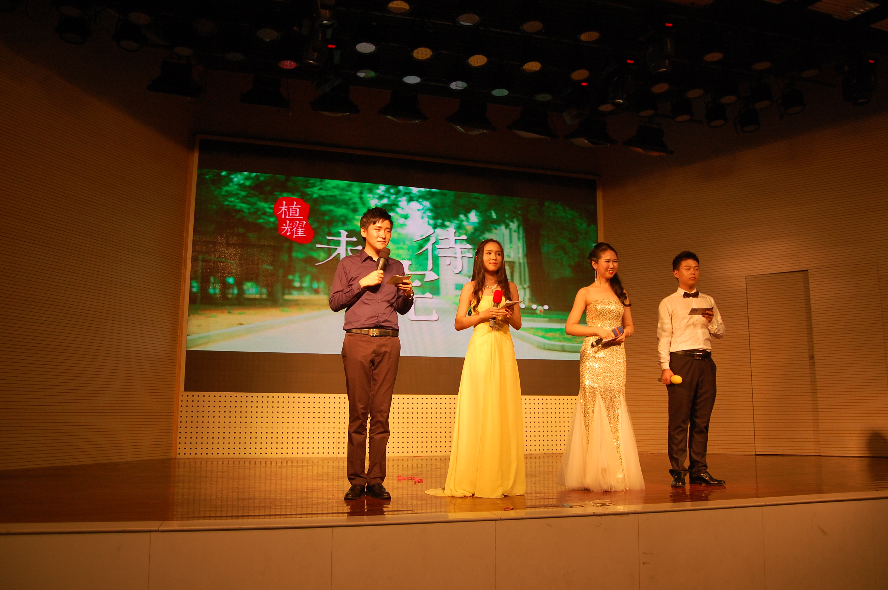 2015届“植耀·未完待续”毕业晚会在大学生活动中心正式拉开帷幕。院党委副书记黄绍华及辅导员、班主任老师等人亲临现场,与学子们齐聚一堂欢送本届毕业生。喻博文,李晨浩,赵瑞,秦晓宇担任晚会主持人。