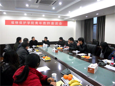 在理科楼C306召开青年教师座谈会。植保院副院长高学文教授、学校督导老师徐汉涛老师、教师代表武淑文老师和学院入职不满三年的青年教师出席了本次座谈会,会议由高学文教授主持。