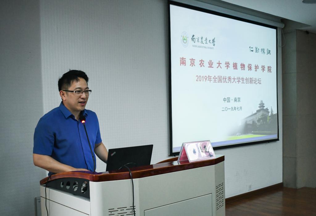 。随后,他介绍了南农的发展概况,指出植物保护专业在第四轮学科评估中获得A+,学院先后涌现出一批杰出的校友、优秀的中青年教师和创新团队,具有优越的科研平台。他还强调学院非常重视人才培养,曾获得国家教学成果二等奖、江苏省教学成果特等奖等奖项。最后他勉励各位优秀学子把握此次交流的机会,充分了解学院的优势和特色。