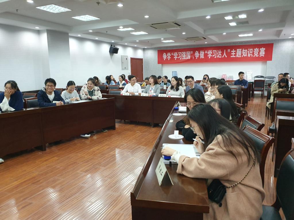 在理科楼C303举办了争学“学习强国”,争做“学习达人”主题知识竞赛活动,本次活动邀请了李艳丹、 张岩、李子成和罗舜文四位老师出席,参加的队伍包括研究生各党支部代表队和本科生党支部代表队。