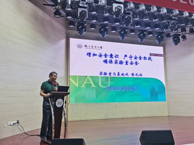 陈礼柱作了题为《增强安全意识,严守安全红线,确保实验室安全》的报告。他以国内高校实验室安全事故为例,强调加强实验室安全的必要性;从解读学校实验室安全包含的主要内容,强调严守安全红线;通过展现学校实验室安全现场问题的照片,强调要严抓实验室安全绝不松懈,把实验室安全意识贯彻落实到日常实验的每一步。
