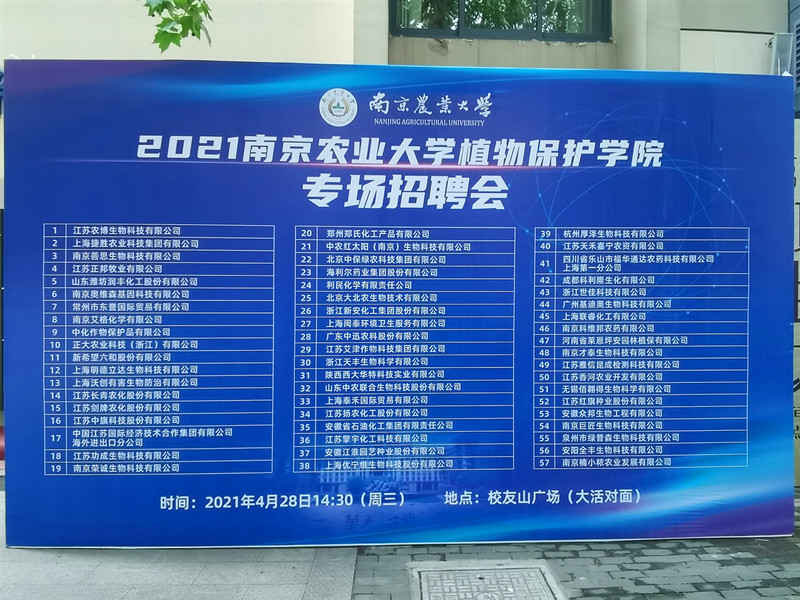 于校友山广场成功举办2021年专场招聘会。参与本次招聘会的有来自北京、上海、广东、江苏、浙江、山东、河北、河南等数十个省市共57家单位,提供了研发、检测、登记、外贸、销售、技术推广等多元岗位共计284个,涵盖植物保护、环境保护类、化学类、经济与贸易、生物学、外国语言文学类等十余个专业领域,为嫩草影院
