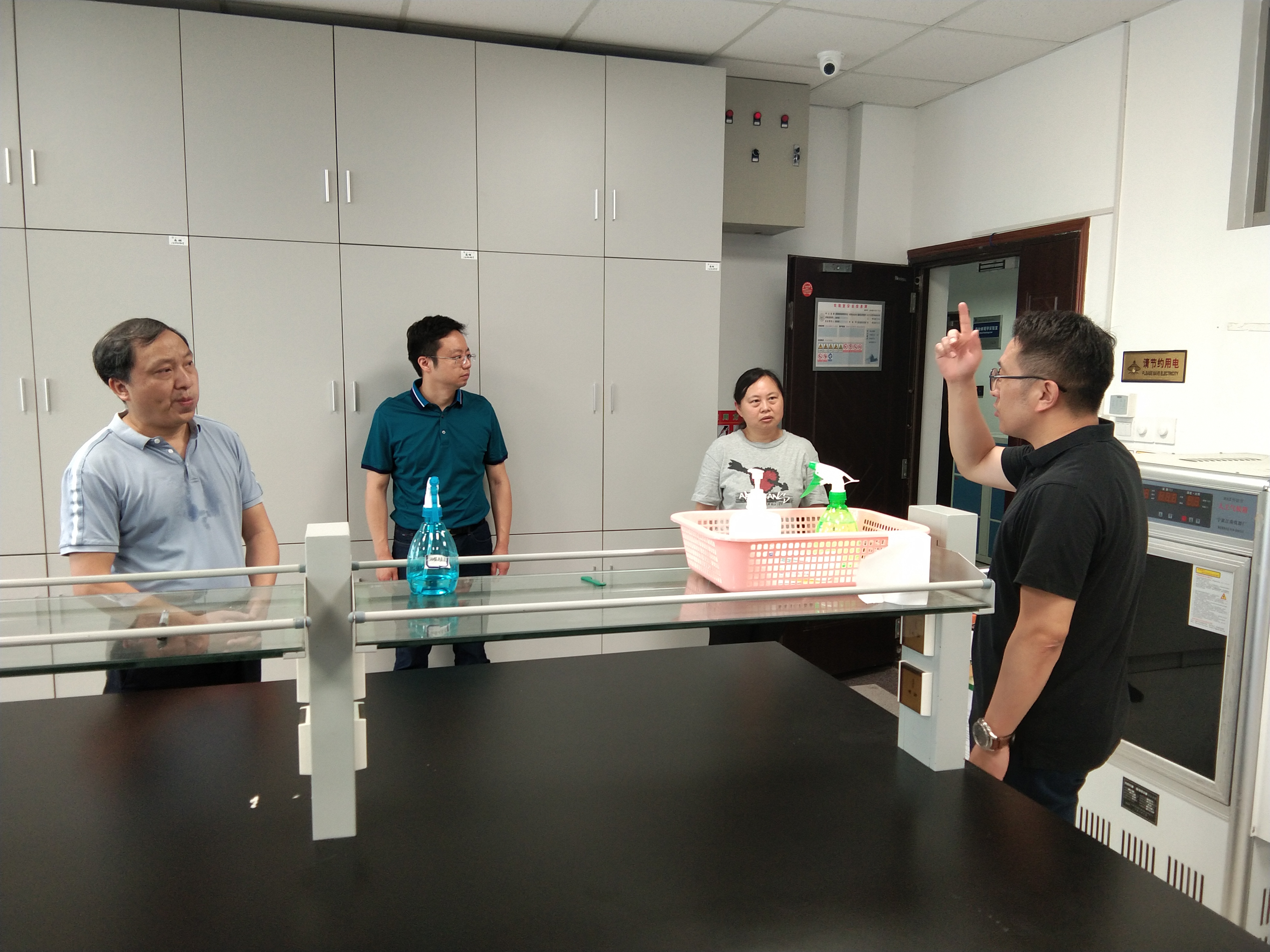 检查人员一行详细检查了各实验室危化品存储、压力设备持证上岗、消防通道堵塞、公共空间杂物堆积等问题,特别针对近期教育实验室安全现场检查反馈的7类21项安全隐患进行了重点巡查。