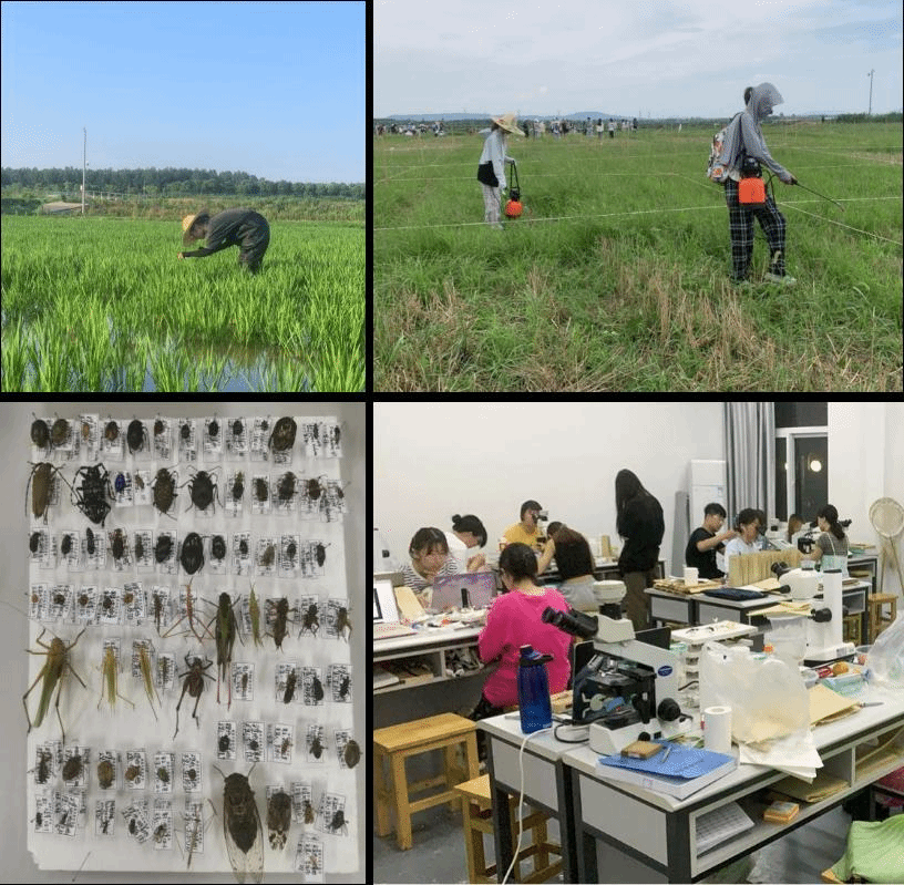 作为植保学生的一门必修课,生产实习是同学们检验书本所学,积累实践经验的重要实践环节。在老师的带领下,同学们分工协作,在田间抓虫、采病叶、划小区、喷农药,查阅资料,鉴定昆虫和病原物,保质保量的完成实习任务。