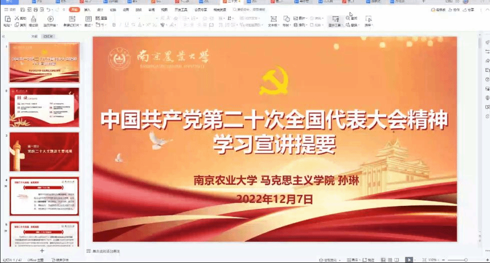 党委邀请学校党的二十大精神宣讲团成员、马克思主义学院孙琳副教授作专题宣讲报告。宣讲报告以线上的形式召开,学院党委委员、党支部书记、党员代表等100人参加会议。报告会由学院党委副书记吴智丹主持。
