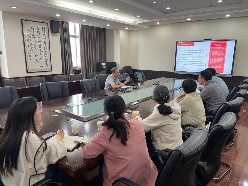 副院长华修德为联系党支部讲授《实施科教兴国战略,强化现代化建设人才支撑》,他指出高校是教育、科技、人才最集中的交汇点,要从“三个必然要求”深刻认识有组织科研、以“四个下功夫”服务国家战略需求、以“三个破解”保障有组织科研实施、以“四个转变”强化国家战略科技力量,积极推进中国高水平科技自立自强。