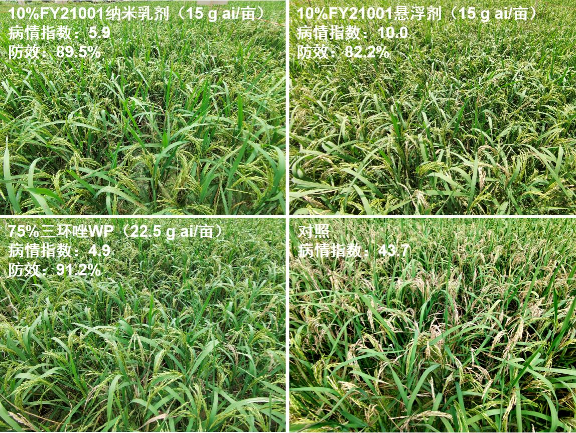 柏连阳院士充分肯定了该项工作的重要意义,他评价FY21001是基于原创性靶标研发的具有原创性结构的新型高效低毒杀菌剂,突破了传统杀菌剂创制的局限性,稻瘟病田间防效突出,与现有稻瘟病防控主流药剂效果相当,建议加快进入农药登记程序。
