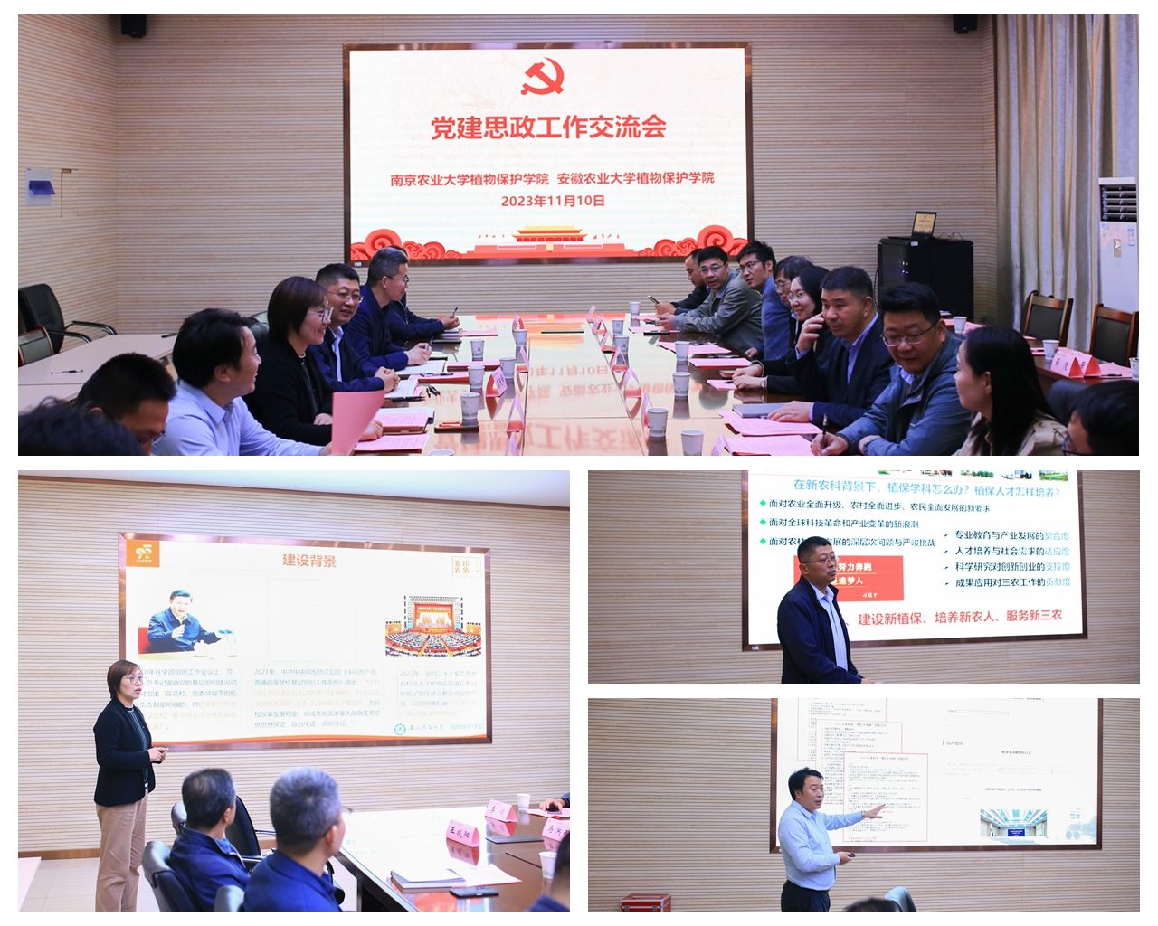 随后,双方人员分别参加党建思政工作交流和学术交流报告会两个分会场活动。在党建思政工作交流会现场,刘柳、汪小强、唐庆峰分别介绍了安农嫩草影院