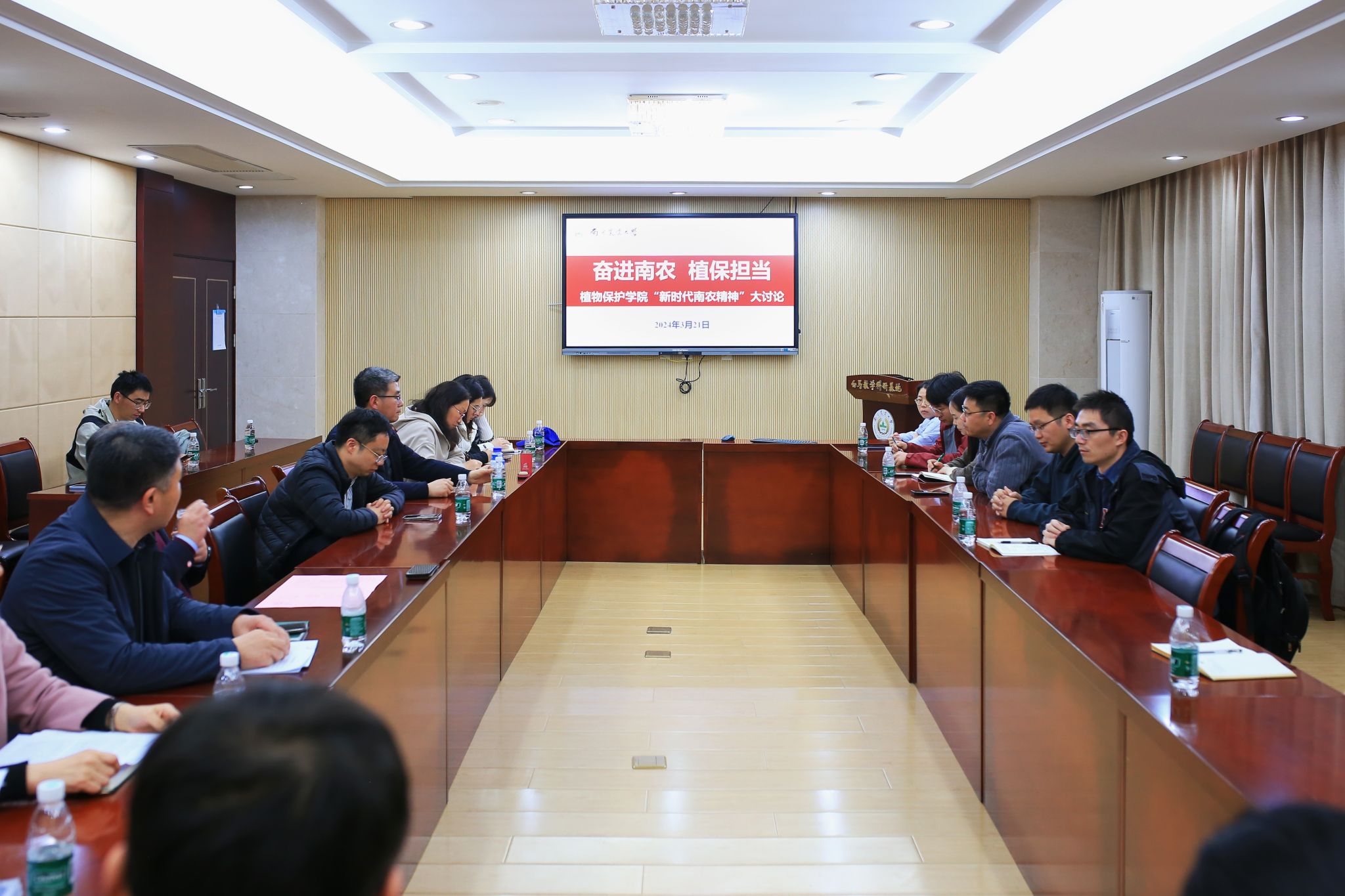 与会者围绕南农精神的根脉溯源和新时代内涵,结合校院发展历史和年度目标任务,展开深入交流。