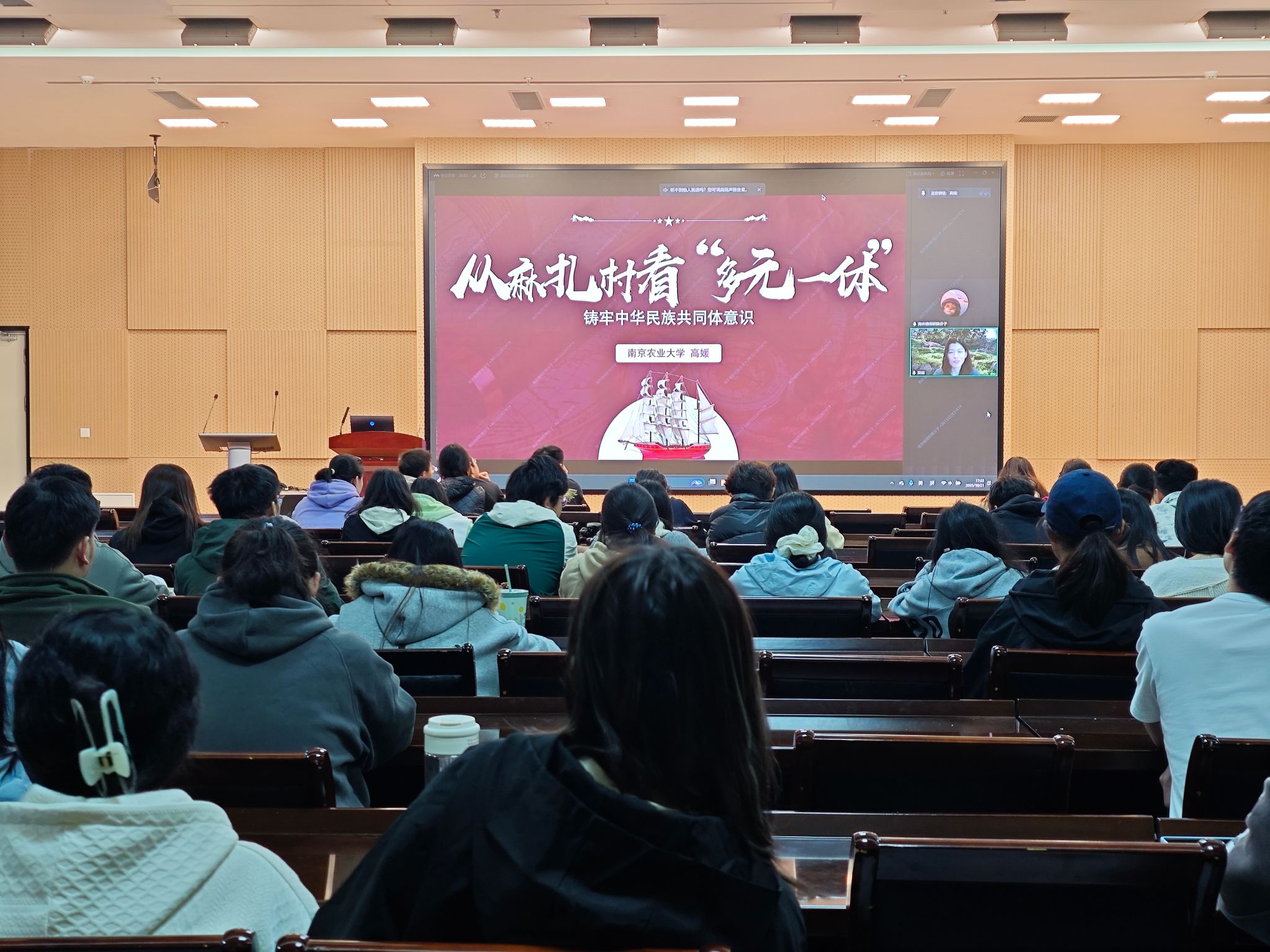 高媛以《多元一体——铸牢中华民族共同体意识》为题,从新疆麻扎村这一典型个例出发,围绕麻扎村地理空间、历史文化、社会现实三大主题,生动阐释了其中蕴含的中华民族与自然和谐共生之道、丝绸之路带来的“多元一体”文化格局,以及新时代新疆在中国共产党领导下繁荣发展的生动景象。她讲道,麻扎村的案例深刻表明,铸牢中华民族共同体意识,根植于中华各民族共同书写的历史、共同创造的文化、共同守护的家园以及共同追求的现代化梦想。它不仅是历史的必然,也是现实的写照,更是未来国家统一、民族团结和各民族共同繁荣发展的根本保障。