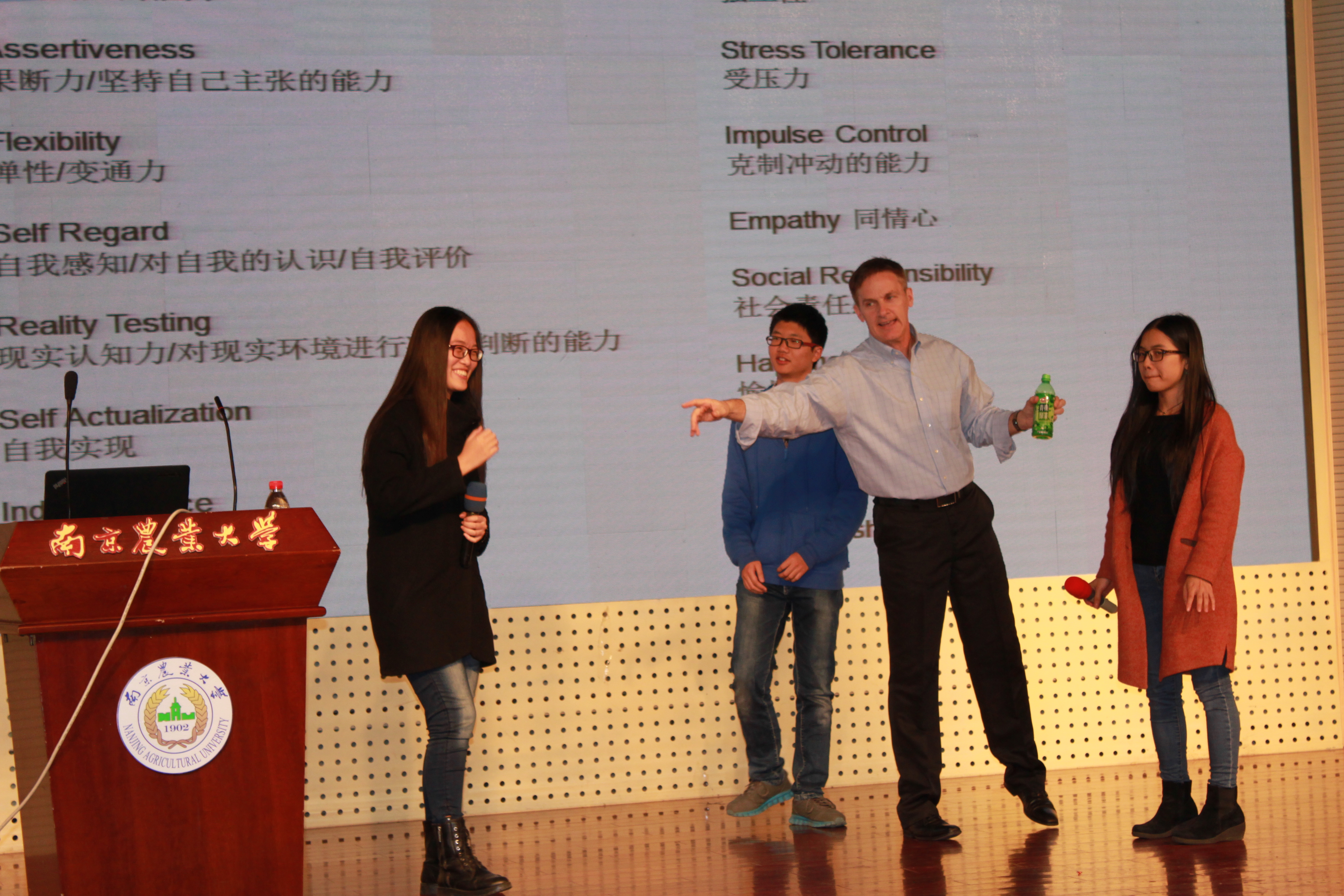 11月11日下午2点,美国资深情商管理专家Mr Guy Armstrong于大学生活动中心作题为“情商管理的现实意义”的讲座。阿热依古丽·木合亚提担任主持,植保院学生参加。