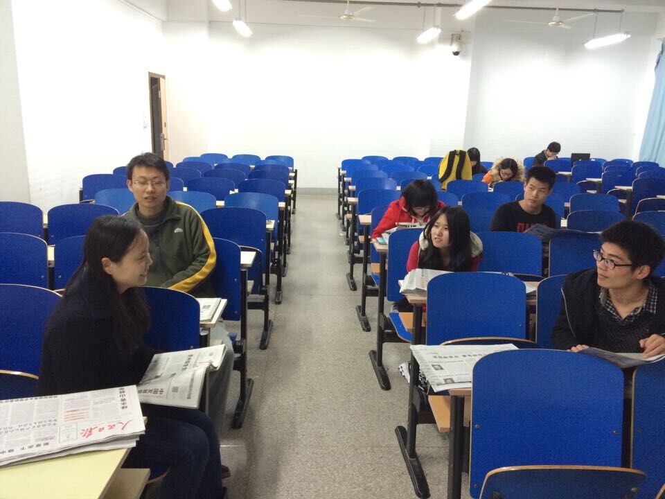 紧接着,各支委一起阅读近日的《人民日报》,并对一些时事热点进行讨论,发表自己的看法。三支部组织委员罗登忠对足协足球制度改革等事项发表了自己的看法,四支部组织委员赵小珍对“提高婚检率”这一热点谈了自己的理解。