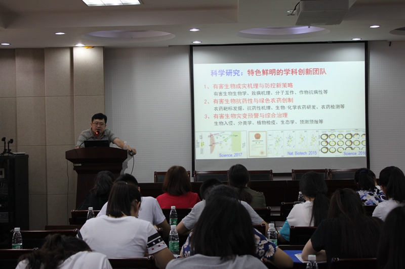 黄绍华首先致欢迎词,他介绍了南农百年发展概况,并希望同学们通过论坛,能够在学习上有新认识、在情感上有新升华、对南农植保有新了解,也希望同学们能够做聪明的学习者、真诚的交流者、热情的宣传员,积极报考南农植保院。