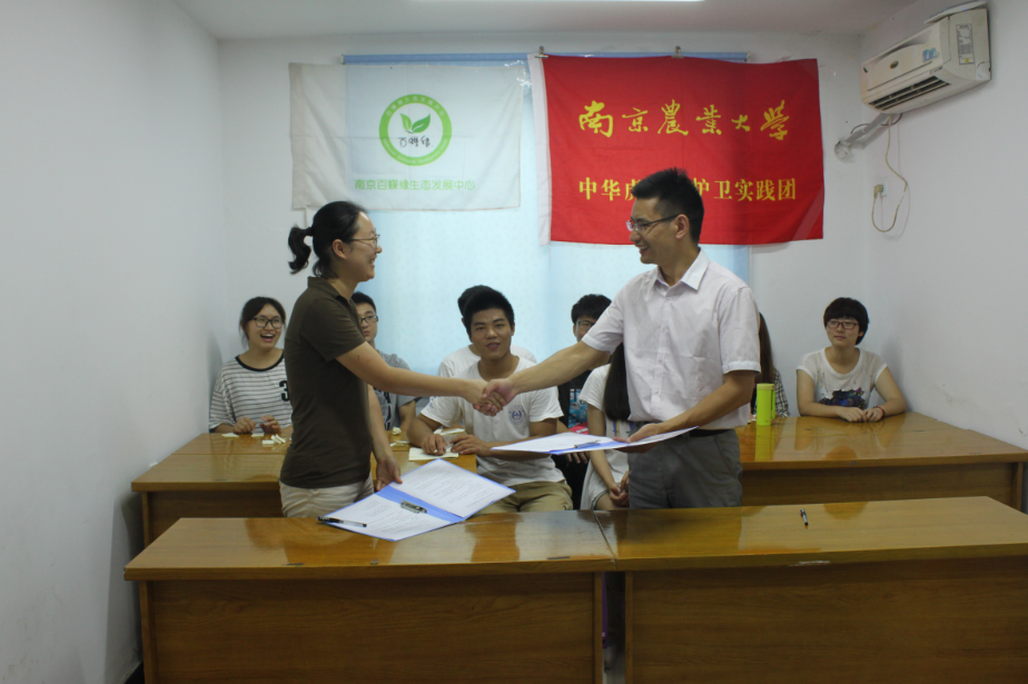 党委副书记黄绍华与百蝶缘生态发展中心活动负责人乐文,在将军山高家库社区签署共建大学生实践基地协议,旨在为共同开展爱蝶、护蝶活动提供更好平台。