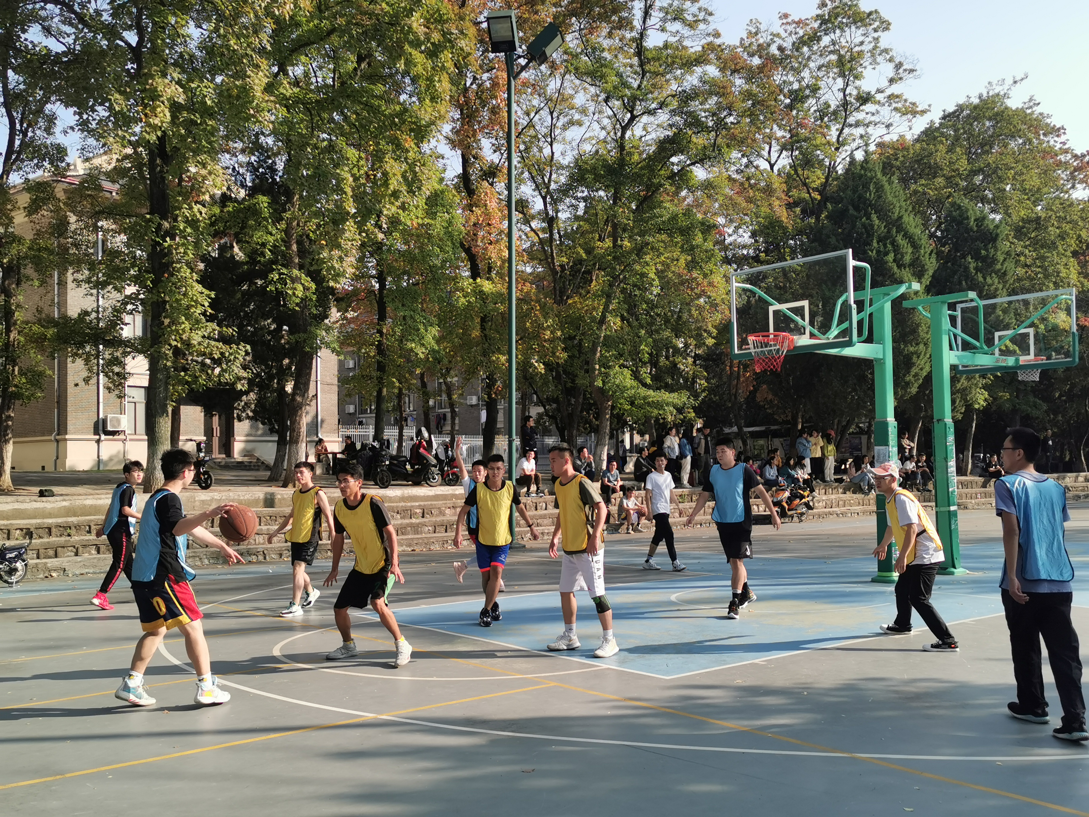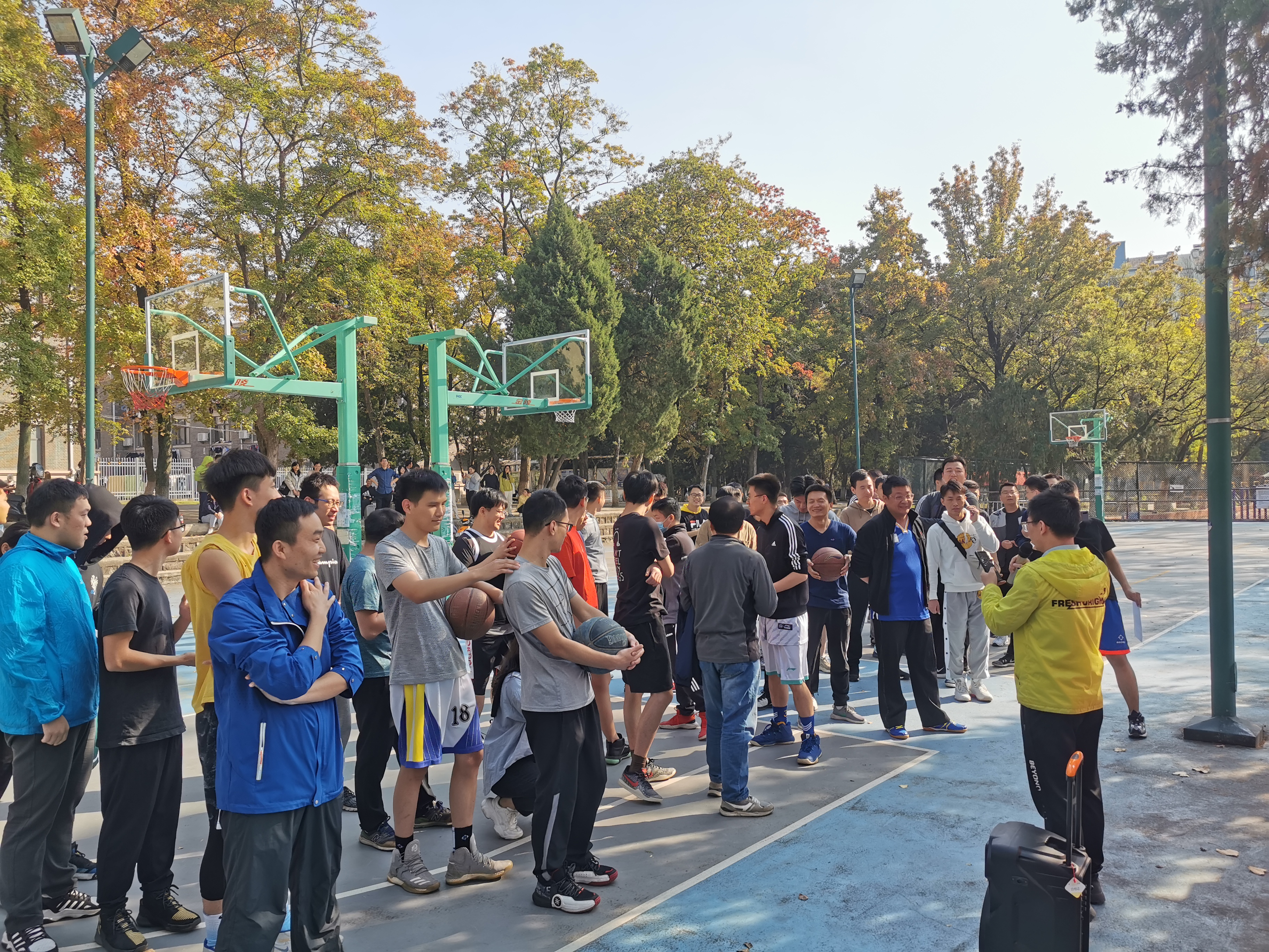 师生篮球交流赛在南苑篮球场如期举行。此次比赛共有9支队伍报名参赛,分别来自学院二十余个实验室,由各个课题组的老师带队。