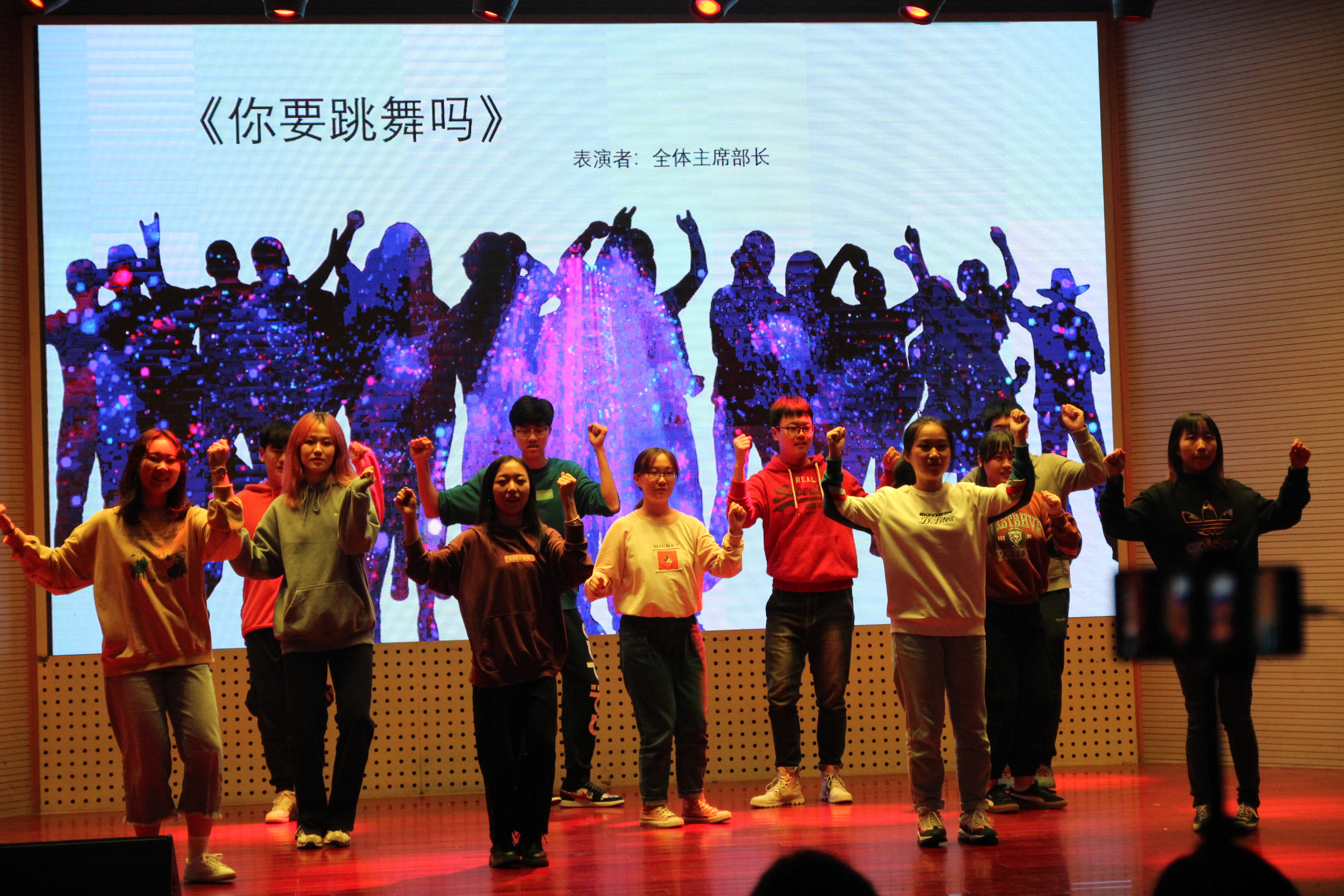 团委 学生会主席团成员为我们带来舞蹈表演《你要跳舞吗》,欢快的音乐,活跃的舞姿,尽展青年风采。