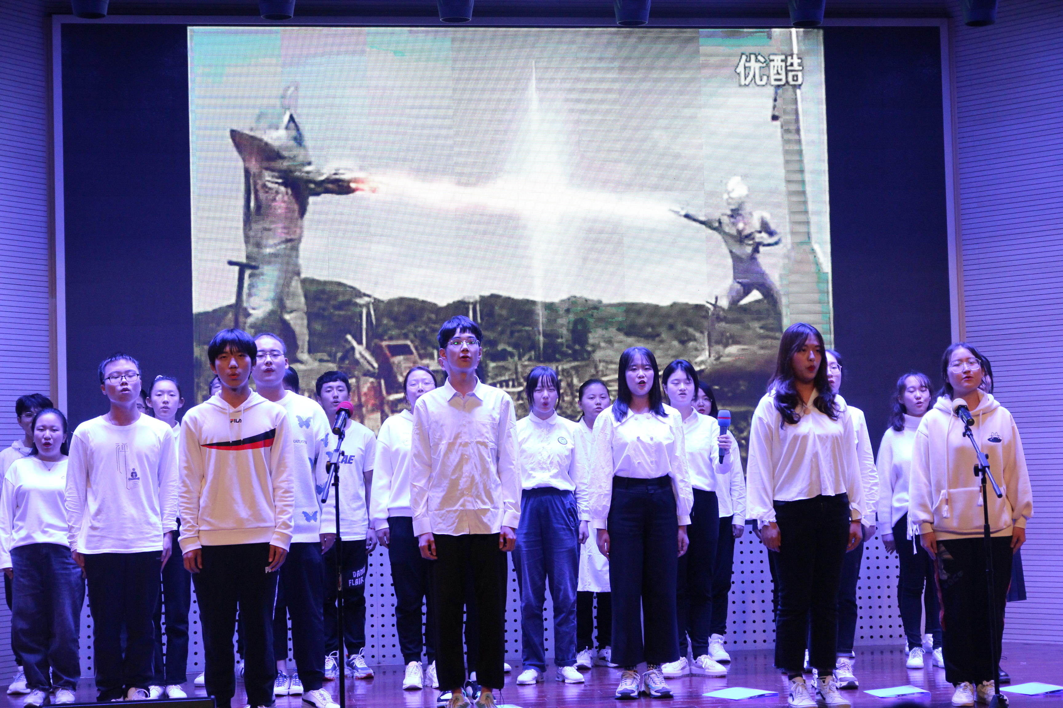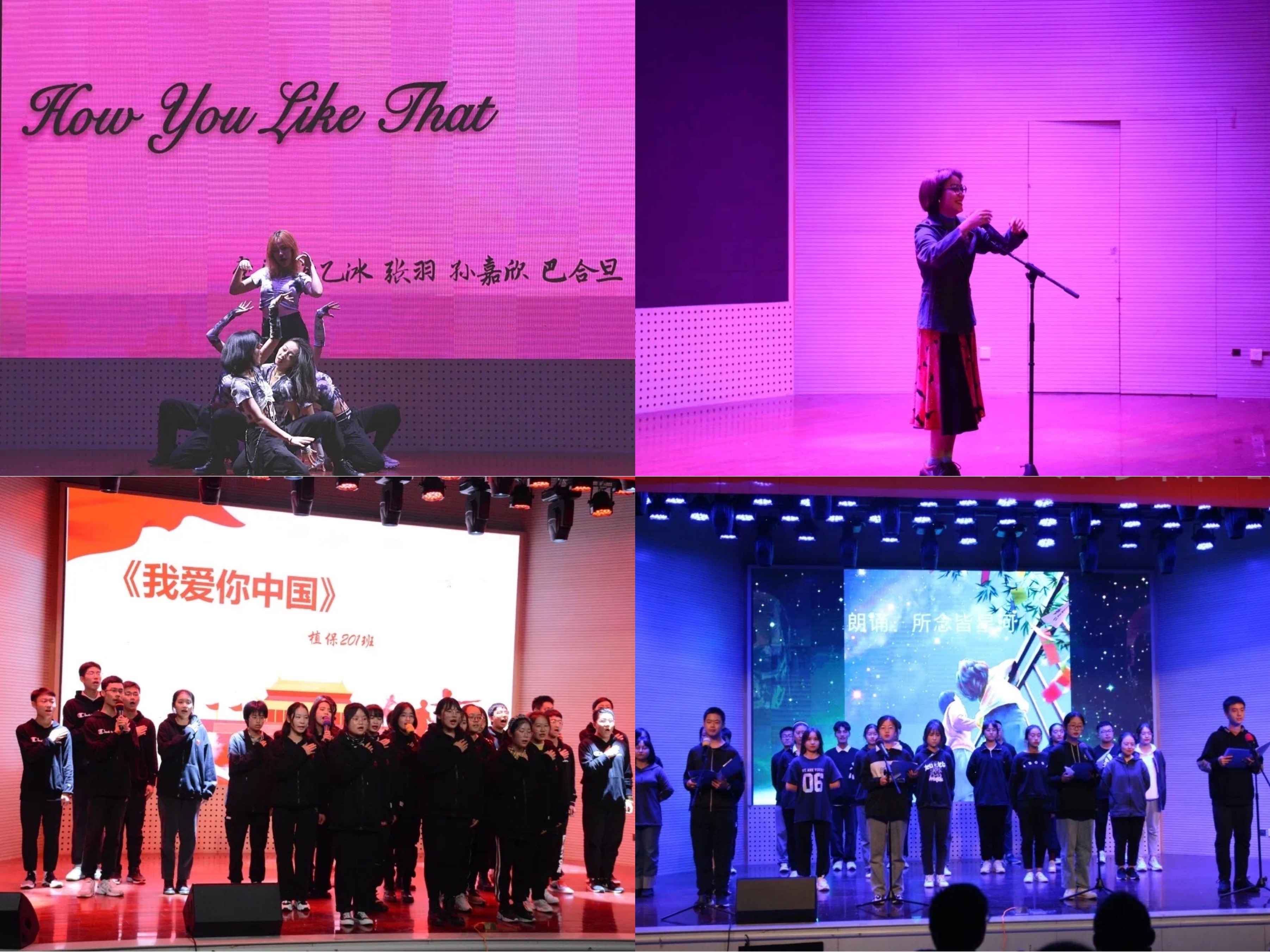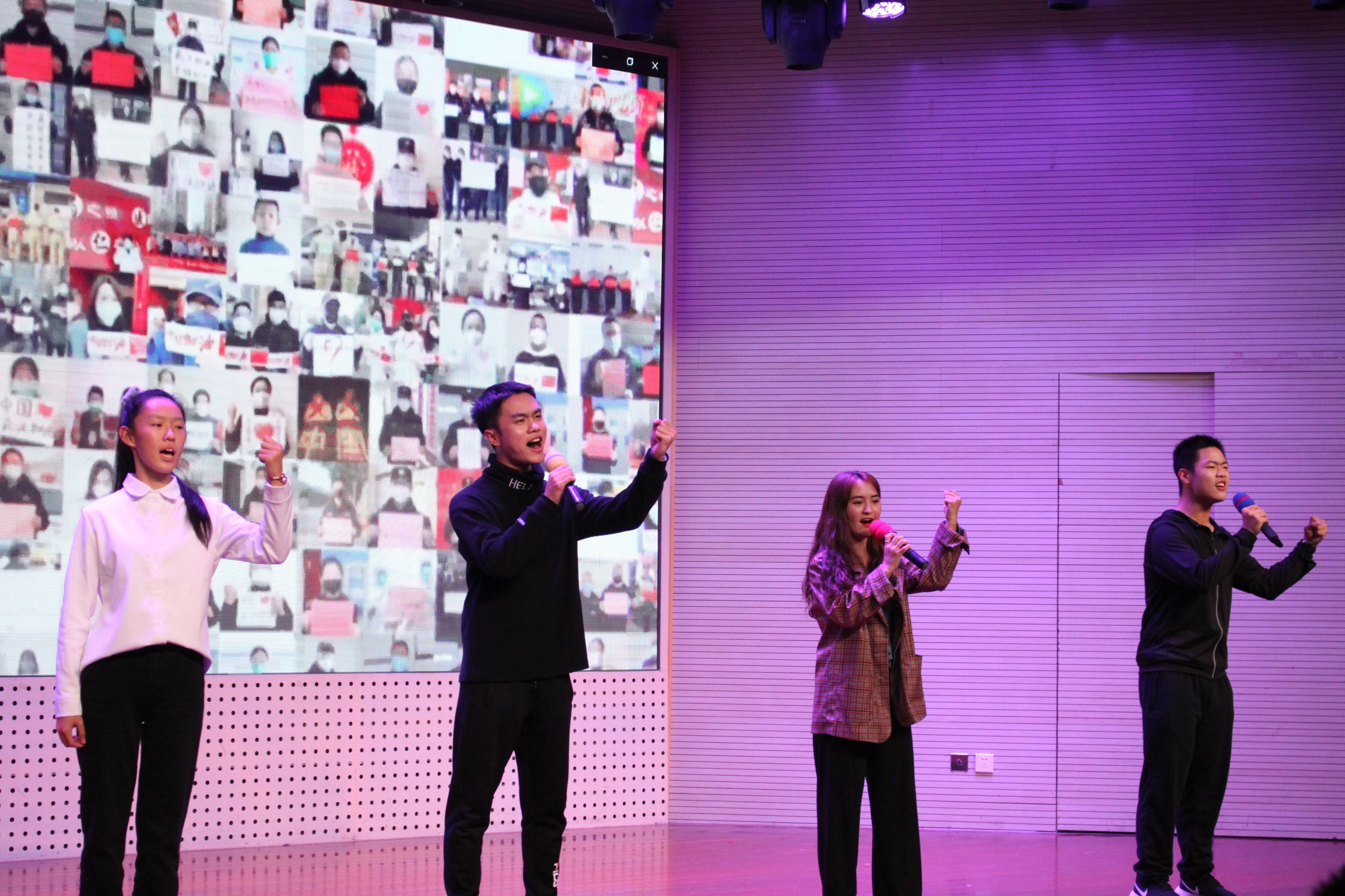 一段活力四射的开场舞后, 晚会第一篇章 “以梦为马”在观众们的欢呼和掌声中拉开帷幕。十佳歌手张芷若同学独唱《所以我停下来》,歌声调皮,婉转动听,意犹未尽。201班同学带来合唱串朗诵《青年有为,赤心报国》,以梦为马,唱心中之志,抒爱国热情。202班同学带来合唱串朗诵《夜空中最亮的星》,黑夜不能将其涅没,便会更为耀眼,声声呐喊,深入人心。