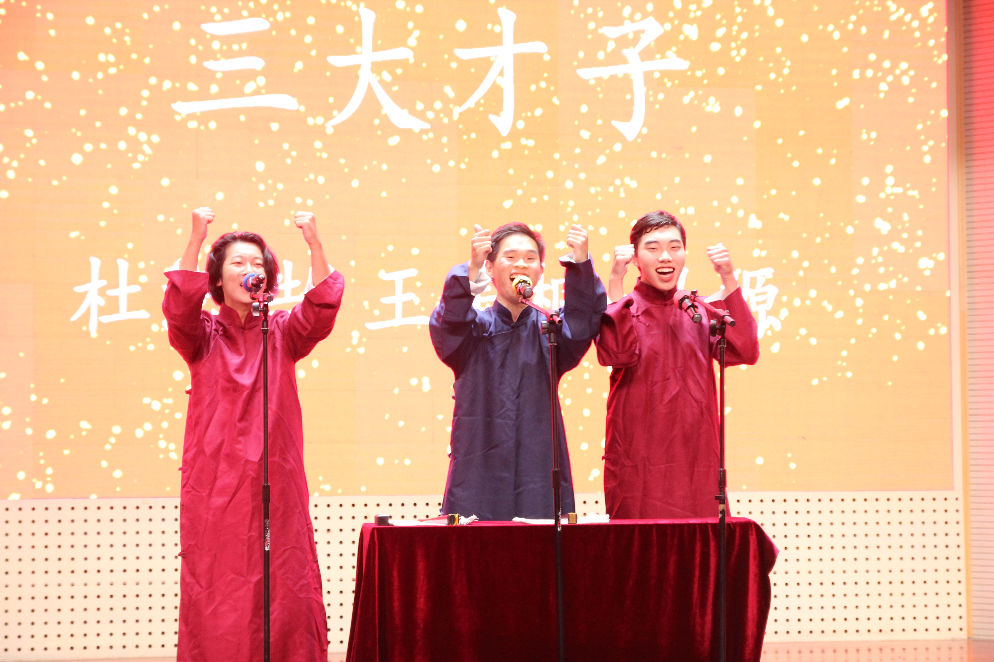 晚会第三篇章“为梦起航”,由王美桐、杜沄皓、马源带来的相声《三大才子》,话语诙谐幽默,笑声连绵不断。合唱团带来一首《坚信爱会赢》,歌唱抗疫一线,鼓舞胜疫决心。204班同学带来歌曲串朗诵《聚离》,别离桑梓的孤独旅行,求学外地的深深思恋,人与人的相聚相离,总会激起观众心中的片片涟漪。