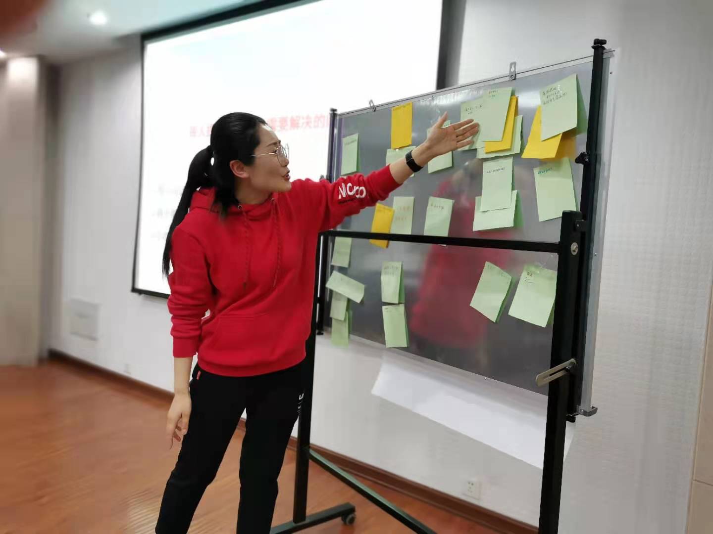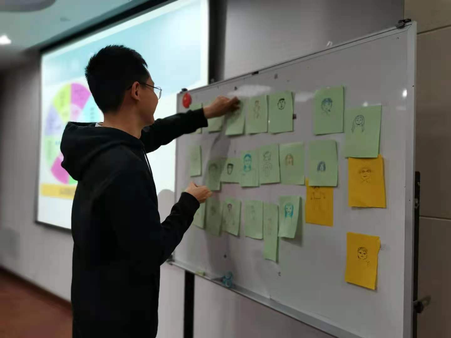 培训中,武昕宇以团队协作的方式,介绍了行动学习法。首先,每个人画一张自画像,罗舜文根据自画像进行分组,各组分别选出组长和秘书。随后,每个小组成员提出现阶段研究生的问题,武昕宇将问题进行归纳并总结出4个主要问题:一是关于条件方面,科研压力大;二是关于人际方面,导师与学生沟通不畅;三是关于意识方面,对心理健康重视程度不足;四是关于活动方面,活动参与度少,缺乏参与热情。各小组选择一个问题进行头脑风暴讨论并找到解决方案,小组间也进行了深入交流。最后,每个小组分享汇报解决方案。