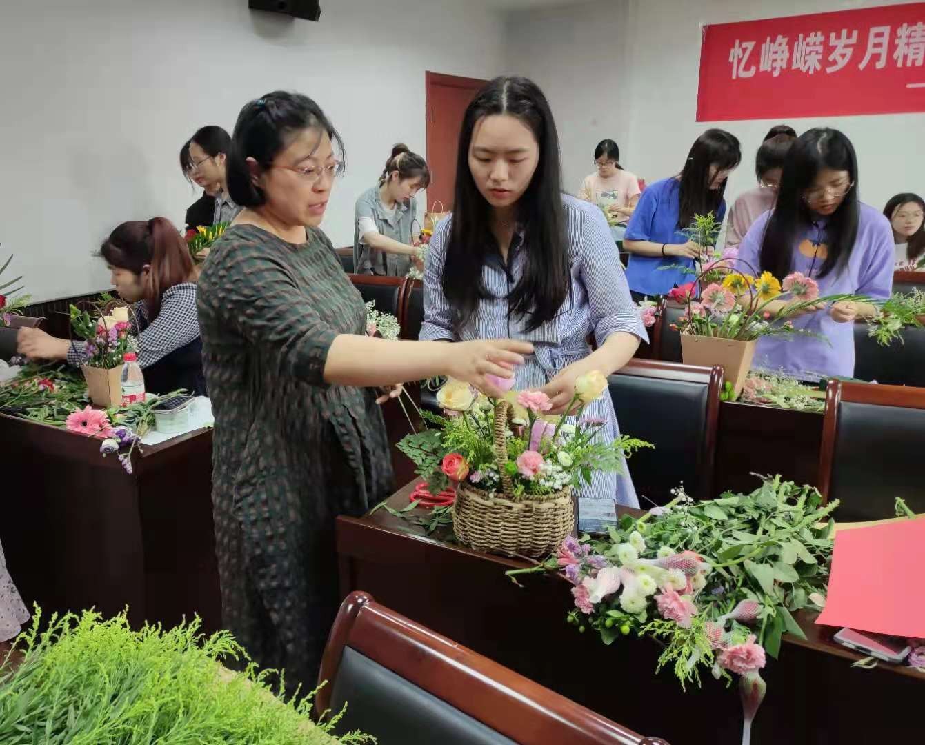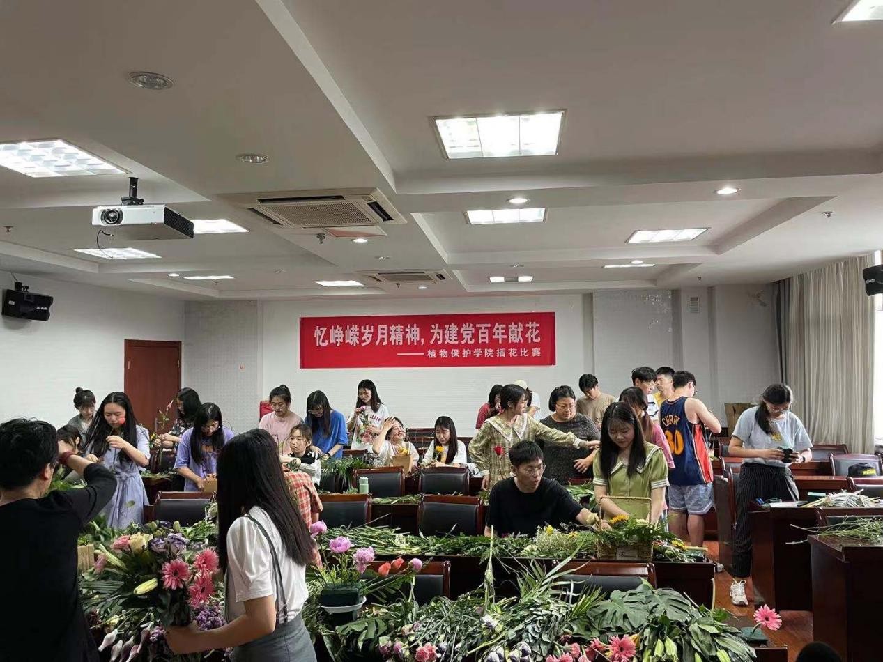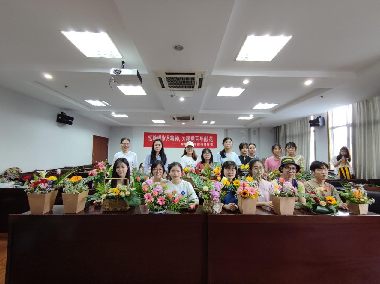 在理科楼C305举办了插花比赛,为建党100周年献礼。