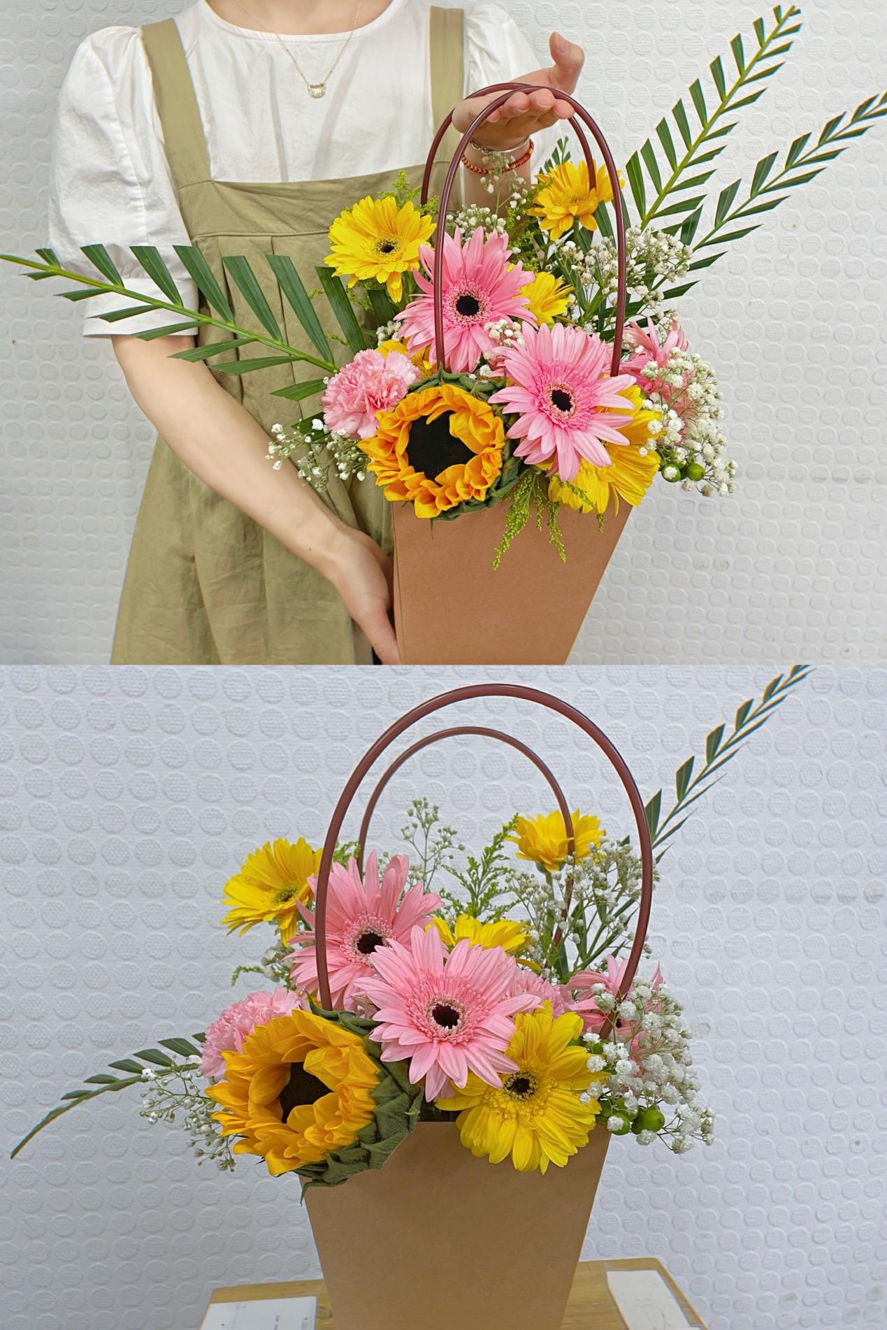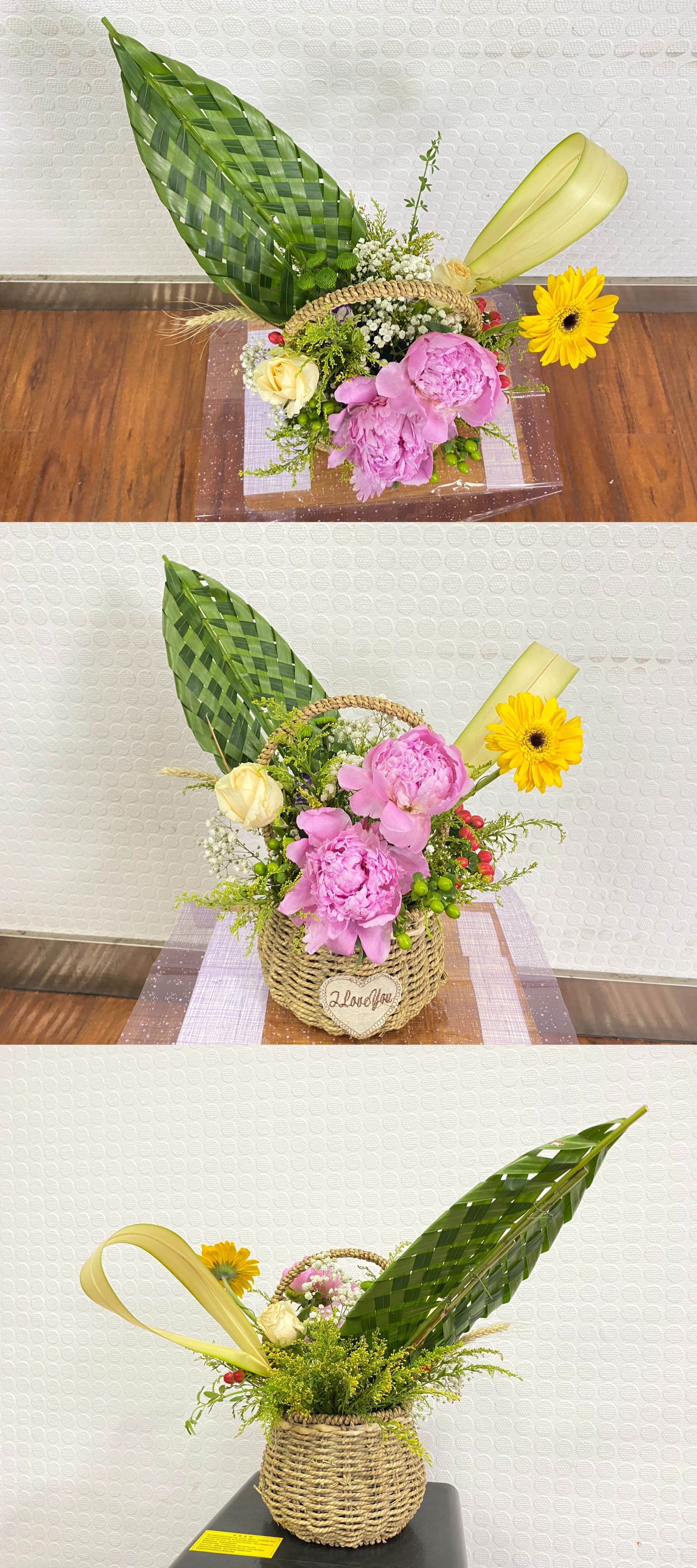 比赛开始后,各位同学发挥创造力,施展插花技能,结合花朵的不同种类、色彩以及寓意,制作了一个个、一束束漂亮美丽的花篮、花束。经过两个半小时的创作,一件件艺术佳作在同学们的手中诞生,现场俨然成为花的殿堂。最后同学们将自己的作品进行了集中展示,指导老师对同学们的作品进行点评和打分。