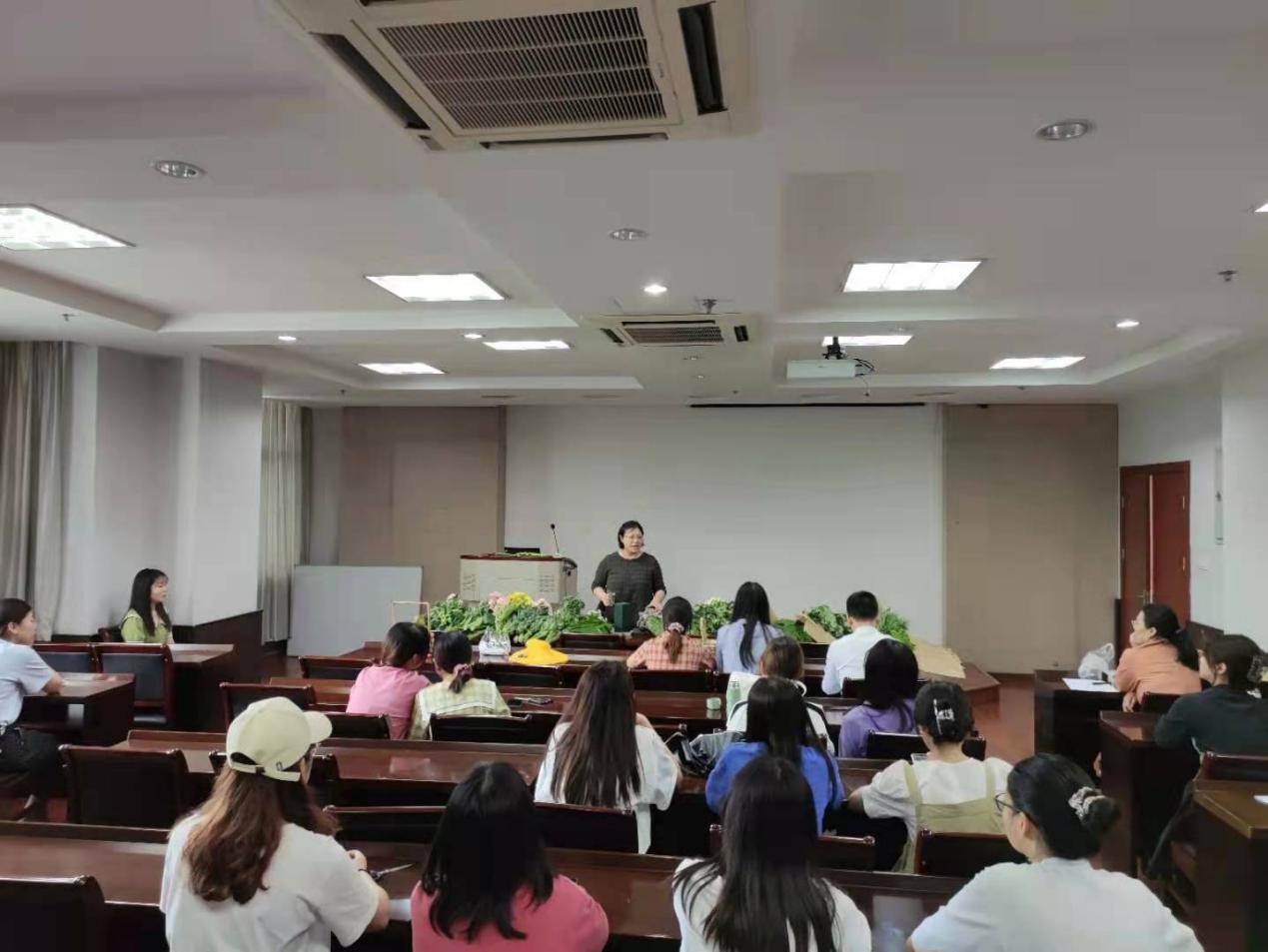 比赛开始前,赵爽首先对插花作品的设计思路、技巧和花色搭配进行了教学,并做了精彩示范;同学们收获满满,摩拳擦掌,跃跃欲试。