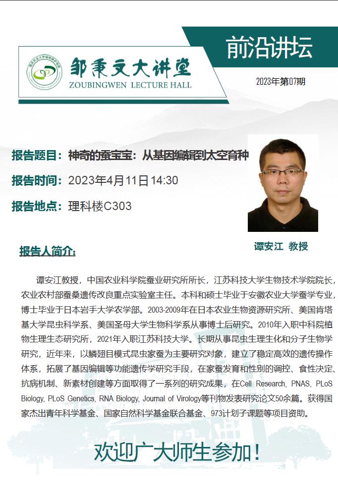 邹秉文大讲堂之前沿讲堂—神奇的蚕宝宝:从基因编辑到太空育种