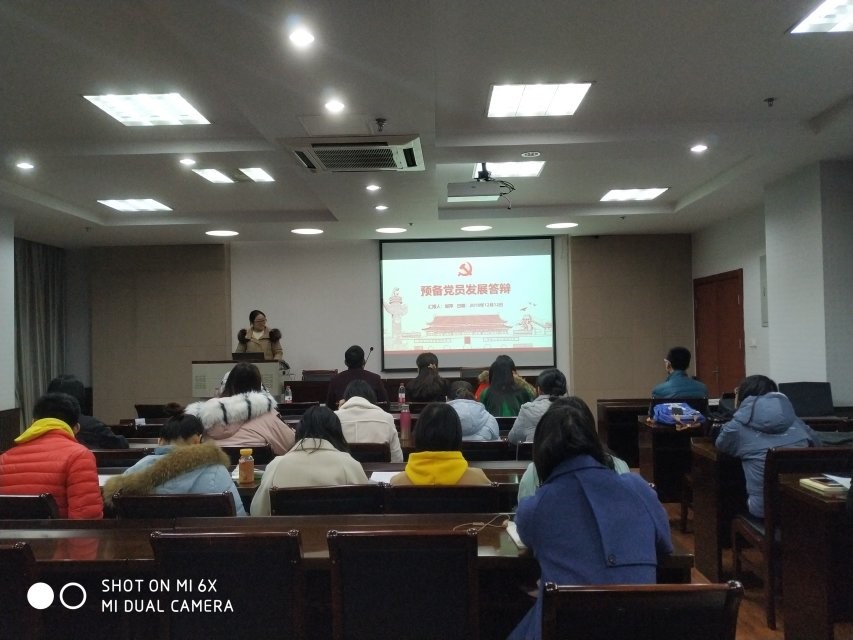 本次答辩分为两个部分,首先由预备党员通过3分钟的PPT介绍自己,从学习情况,入党动机,未来规划等方面向评委老师展示自己的实际情况。接着,由评委老师从党史党章,时事政治等方面提出问题,准备充分的同学对答如流,表现精彩;也有的同学由于紧张表现不佳。然后,评委老师针对答辩中出现的问题给予批评指导,并且提出一些建议。
